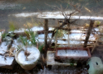 今朝起きたら雪がちょっと積もってました。